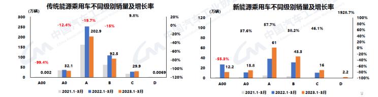 壓力主要集中在傳統能源的乘用車上,中汽協統計數據顯示,除了C級車市場,其余各級別燃油車市場均呈不同程度下降態勢。目前燃油車銷量仍主要集中在A級,累計銷量202.9萬輛,同比下降19.7%。