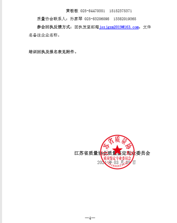 關(guān)于舉辦江蘇省產(chǎn)品質(zhì)量鑒定組織鑒定人及鑒定專家培訓班的通知